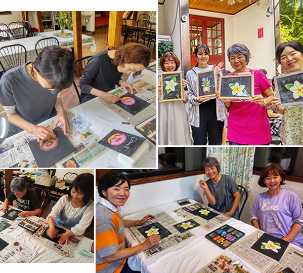 初心者さんでも大丈夫!手ぶらでOK!下絵済みの中からお好きなデザインを選び塗り絵感覚で気軽に楽しめるため人気のレッスンです。