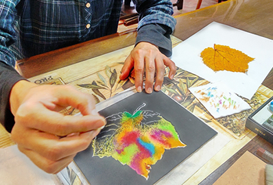 19時~21時 スケッチや写真撮影したモチーフを参考にチョークアートで作品を描きます。